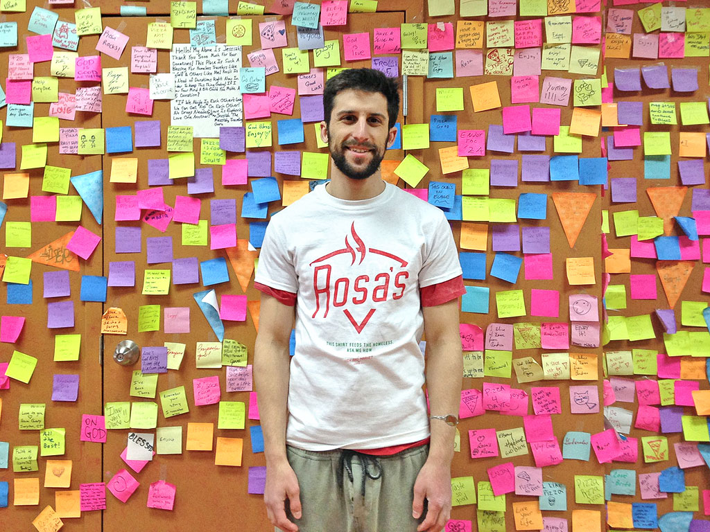 Loop je nu Rosa’s Fresh Pizza binnen, dan zal je de hele muur achter de kassa vol zien hangen met briefjes waarop staat dat de volgende pizzapunt voor de volgende klant is. Nu zullen er vast mensen zijn die zich gratis proberen vol te stouwen, maar er is gebleken dat voornamelijk zwervers deze punten komen halen. Een paar cijfers: tot nu toe werden er maar liefst 8500 pizzapunten weggegeven en krijgt Wartmann dertig tot veertig daklozen per dag over de vloer. Dus wanneer je Obama live op tv een Margherita ziet verorberen, weet dan dat de echte helden mensen als Mason zijn.